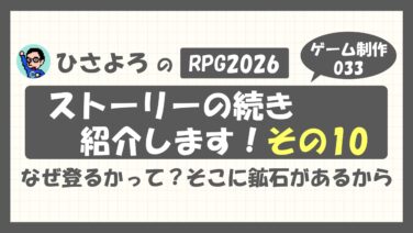 ゲーム制作 【ゲーム制作033】RPG2026 ストーリーの続き紹介します!その10 〜なぜ登るかって?そこに鉱石があるから