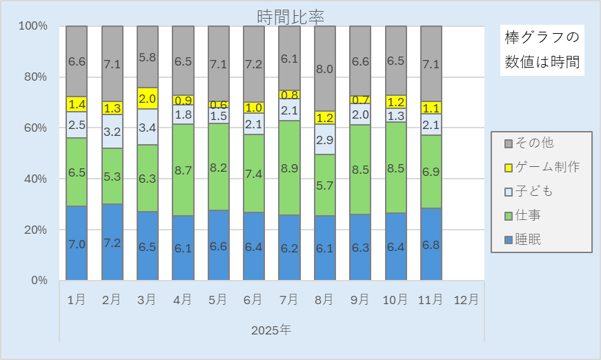 11月の時間の使い方はこんな感じでした↓。