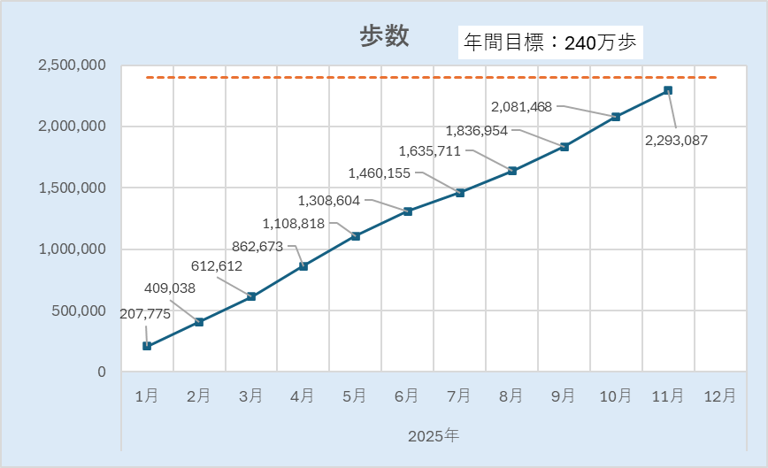 ●240万歩(月20万歩ペース)・・・残り17万歩、無理せず