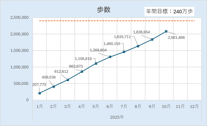 ●240万歩(月20万歩ペース)・・・年間目標達成まで気を抜かない