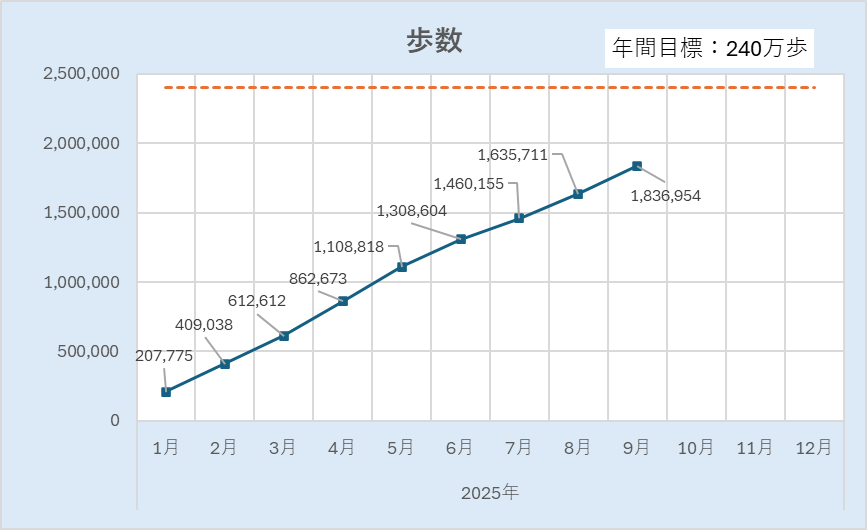 ●240万歩(月20万歩ペース)・・・10月は伸ばすぞ!
